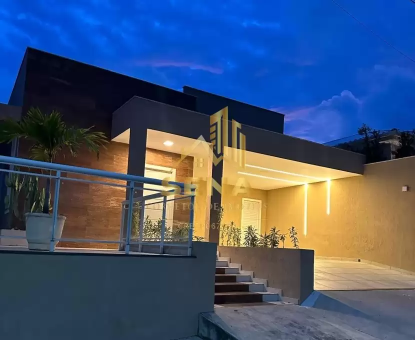Alugo e vendo excelente casa de alto padrão no Condomínio Blue Garden, em condomínio fechado com segurança 24 horas, ideal para quem busca conforto, sofisticação e qualidade de vida. O imóvel possui três quartos, sendo uma suíte com móveis planejados, sala ampla com luminária moderna e planejados, cozinha espaçosa totalmente planejada, banheiro social com armários e box em blindex, além de área de serviço coberta.